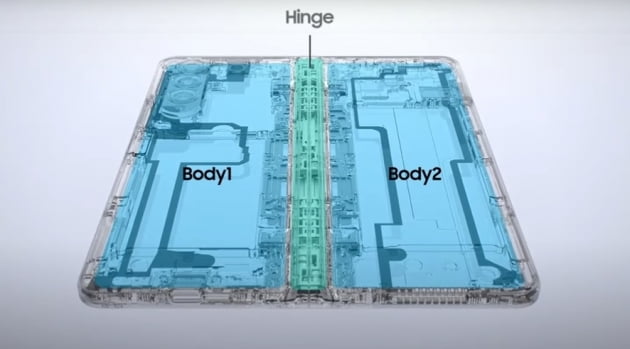 주름을 없애는 것은 이 물방울 힌지 기술이 좋은 것이군요. 삼성전자도 이걸 잘 알고 있었는데 그냥 단호하게 접는 방법을 선택했습니다. 왜 그럴까요? 아마 방수를 위한 것이 아닐까 생각합니다.