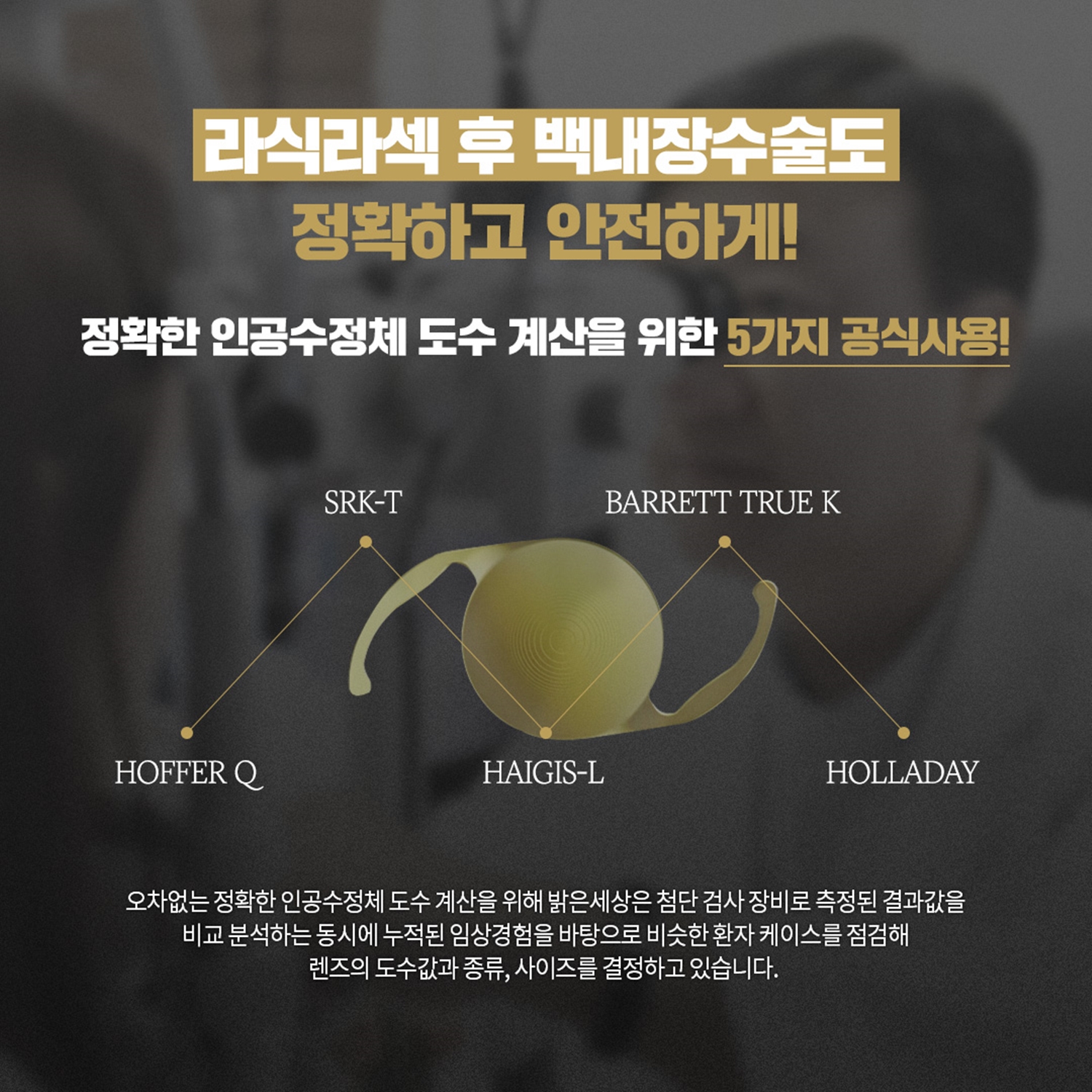 이러한 진단으로 최종 백내장 렌즈 결정이 가능한 곳은 다초점 LENS 선택부터 사후 관리까지 밝은 세상 안과입니다.