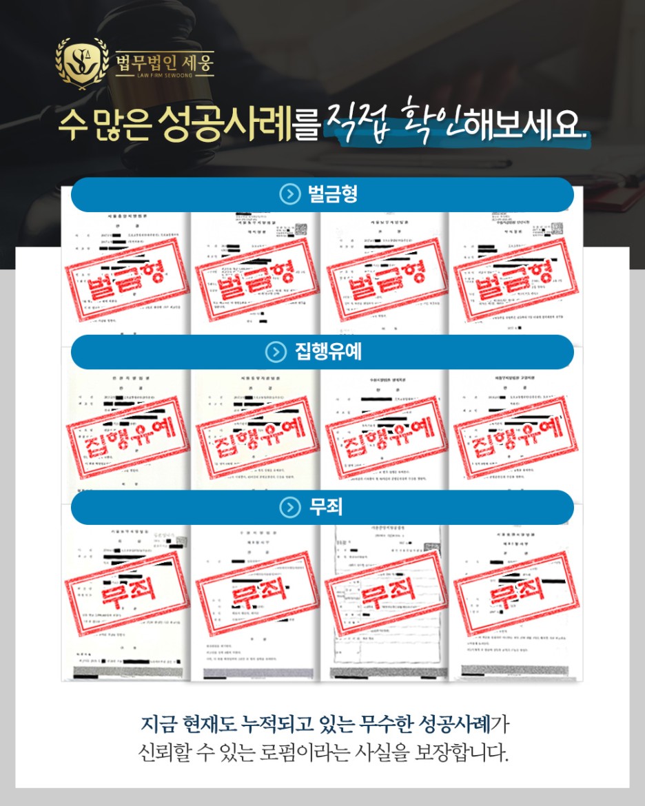 <법무법인 새운이 실제로 담당한 음주운전 사례를 일부 인용해보겠습니다.>
