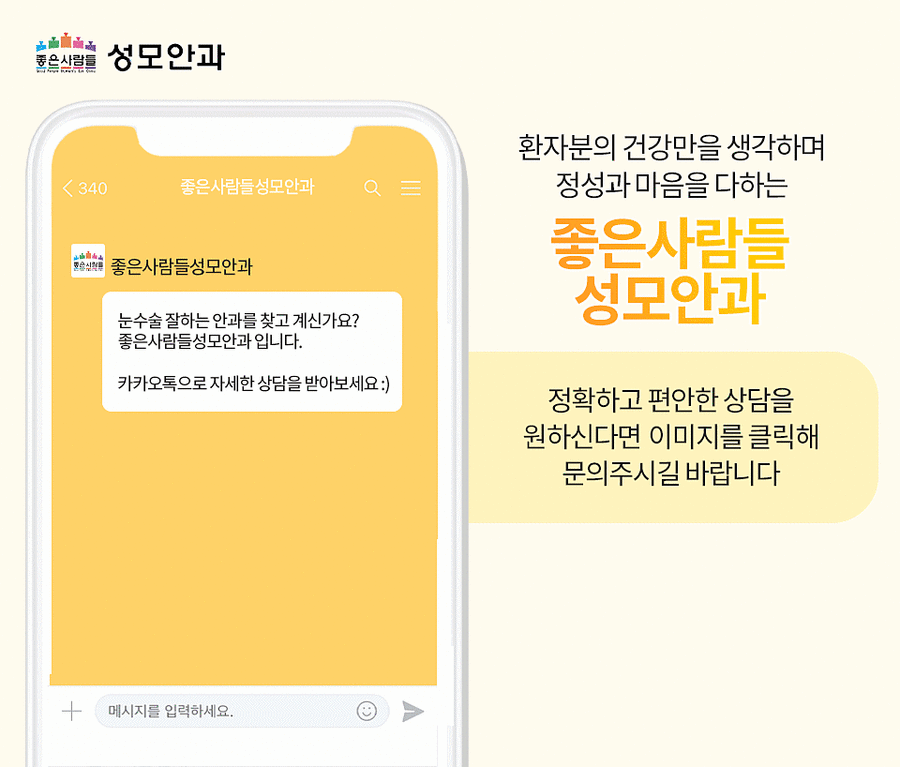 백내장 수술에 대한 자세한 상담은 아래 이미지를 통해 확인해주세요!▼건강한 눈으로 개선하고 싶다면? 카카오톡 상담 클릭!▼