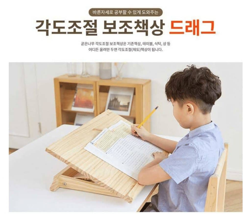 집에서 컴퓨터를 하면서 모니터를 보듯이 카페나 도서관에서 책을 놓고 모니터를 보는 각도처럼 사용할 수 있는 제품입니다. 특히전공도서를올리고아래쪽에는노트를두고필기를하면서사용하면정말편리하죠.