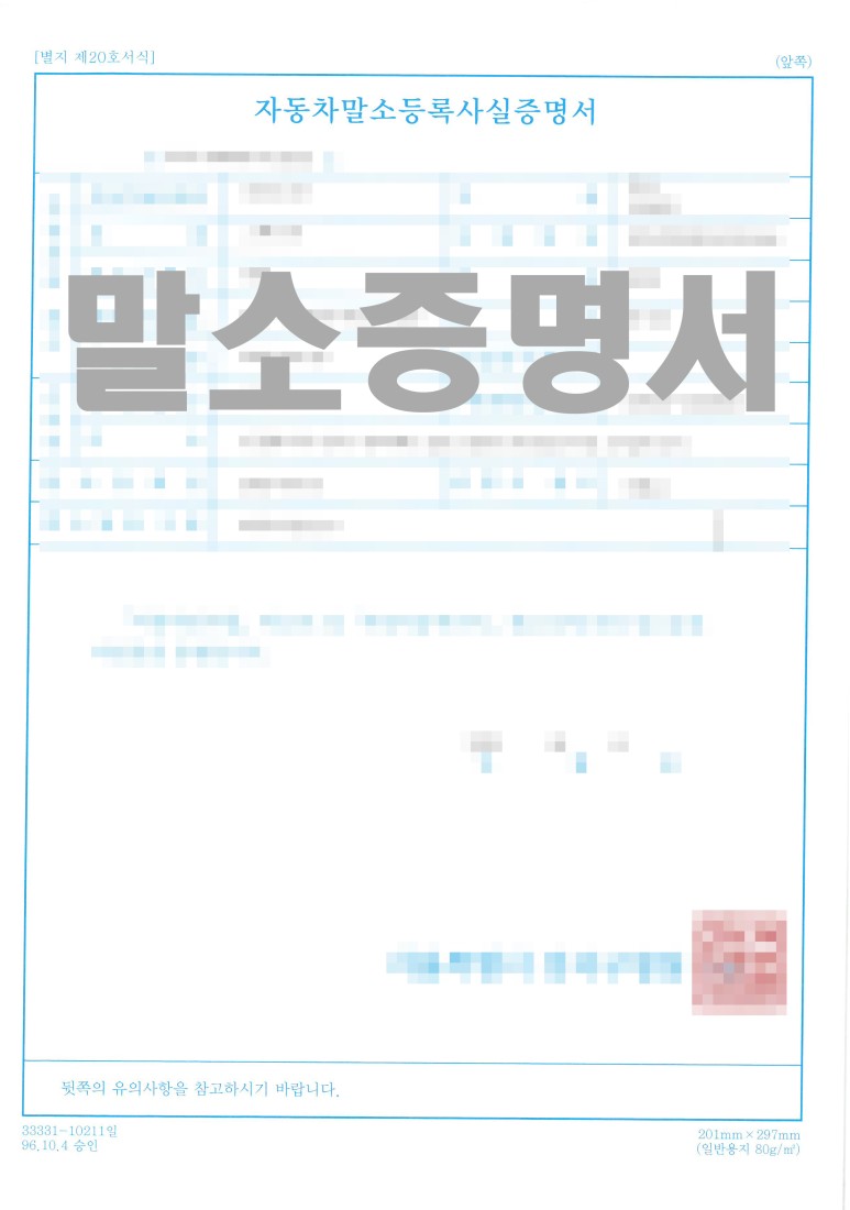 일반말소의 경우 차량 입고일정 조정 후 담당기사가 직접 수거해오고 있으나 정상운행이 가능한 차량이면 탁송, 그렇지 않을 경우 견인회수가 이루어지고 관허를 받은 업체에서는 해당 절차를 밟으면서 별도 수수료를 받지 않아 만일의 경제적 손실에 대비할 수 있습니다. 차량 회수가 이루어진 후에는 간단한 차량 확인을 거쳐 물리적 처분이 이루어지고 있습니다.