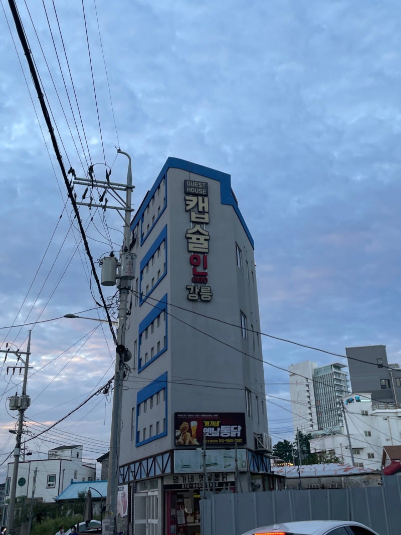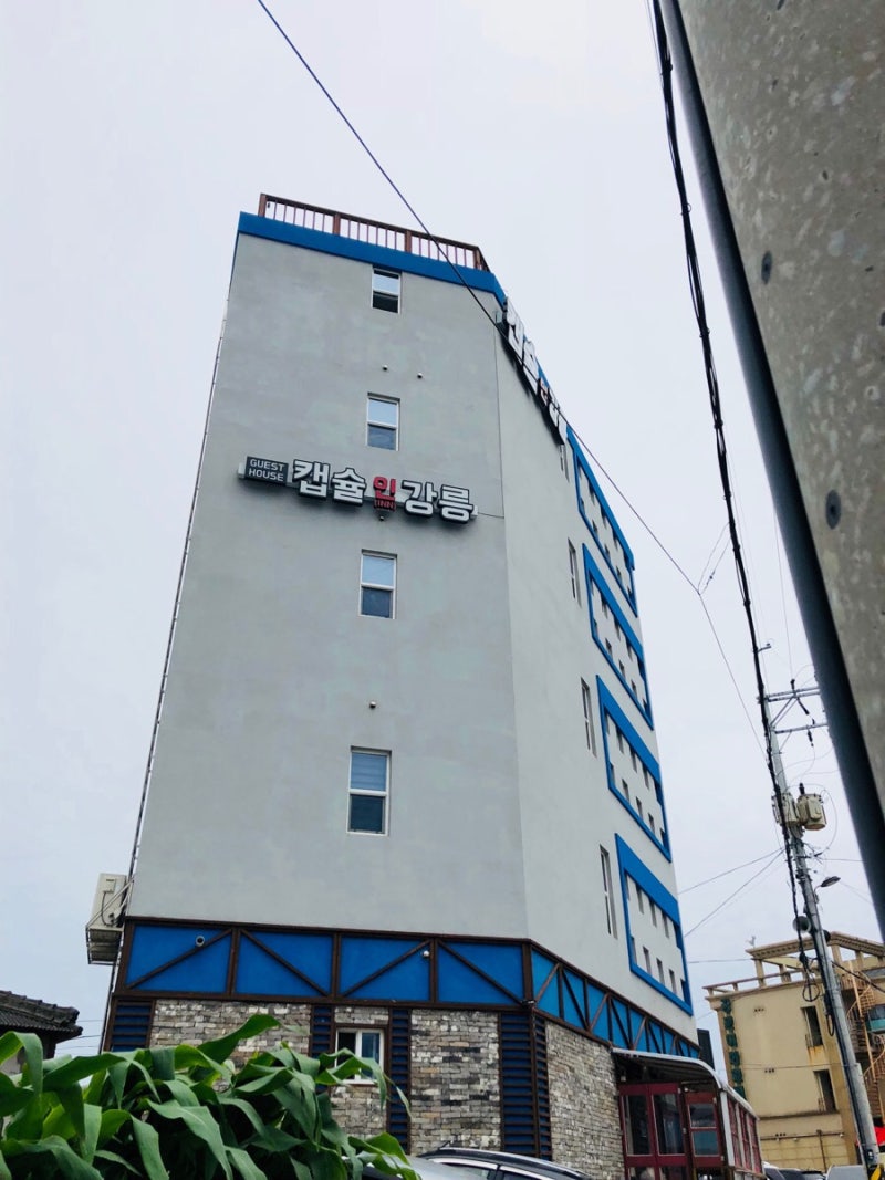 도보여행이라 종점이 어디일지 예상하지 못해서 예약은 안하고 갔는데, 강문해변에서 저녁에 도착해서 강릉여행 전에 알아본 숙소 중에 제일 끌렸던 ‘캡슐인 강릉’에 고! 1층에는 옛날 치킨집이 있는데 캡슐의 강릉사장님이. ㅎㅎ 그래서 가게에서 현지 카드결제를 할 수 있어요.추석연휴였는데 1박에 25,000원으로 강릉해변 개하중 저렴 ㅋㅋ