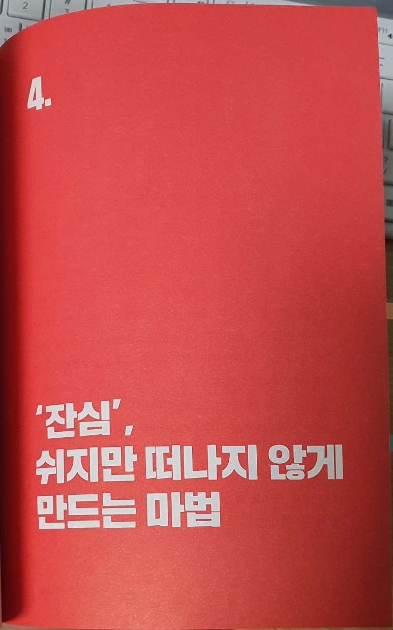 ‘잔심’, 쉬기만 하면 떨어지지 않게 하는 마법.잔심은 이 세상 모든 것을 나의 경제적 상황과 연결시켜 생각하는 버릇이다.여가 시간에 IMF 내용을 다룬 <국가부도의 날> 영화를 모아 미국의 2008년 경제위기에 대한 <빅쇼트>를 보는 그는. 정말 대단하다.확실히 열심히 한다는 기준 자체가 달라. 나도 좀 더 생각의 폭을 넓힐 수 있는 사람이 되도록 다양한 사람도 많이 만나고 책도 많이 읽고 경험을 하면서 실패도 많이 해보자.