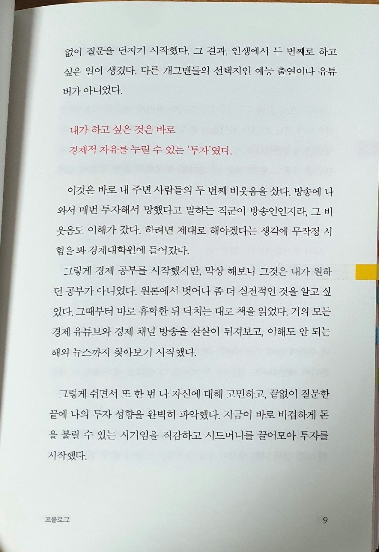 개그맨이 되기 전처럼 다시 내게 끊임없이 질문을 던지기 시작했다. 그 결과 인생에서 두 번째로 하고 싶은 일이 있었다. 경제적 자유를 누릴 수 있는 투자였다. 이것은 내 주변 사람들의 두 번째 비웃음을 샀다.
