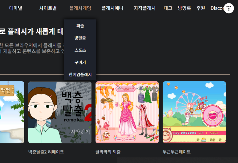 테마별 / 사이트별 / 프레쉬 게임 / 플래시 애니메이션 / 자체제작 플래시