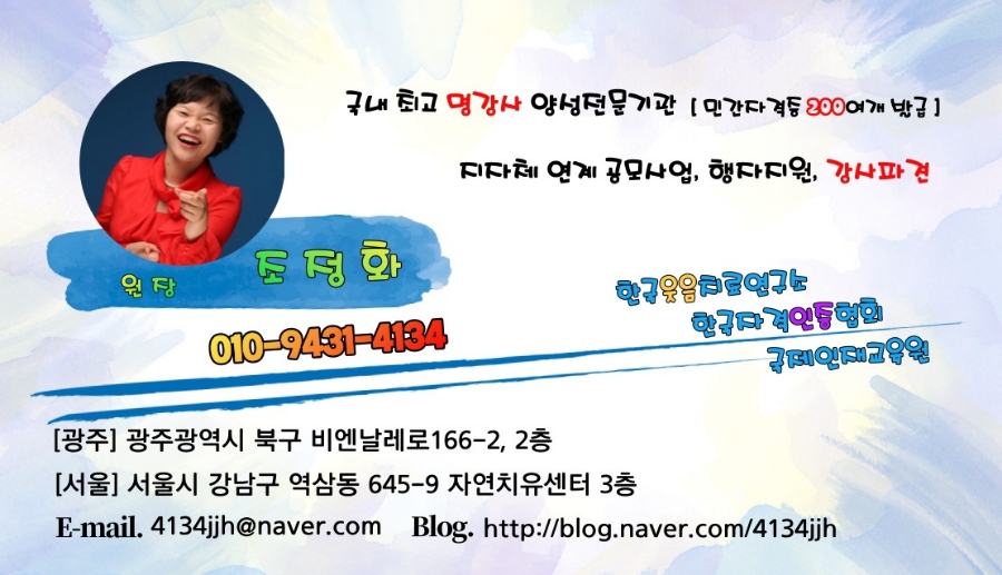 https://m.blog.naver.com/4134jjh/222538525878 #안녕하세요 교육을 통해 행복한 세상에 안내하는 조정화 강사입니다 교육경력 30년차, 교육세계에만 있는… m.blog.naver.com 원팀에서 뭉치는 강사님들, 최고입니다.정말 고맙습니다。