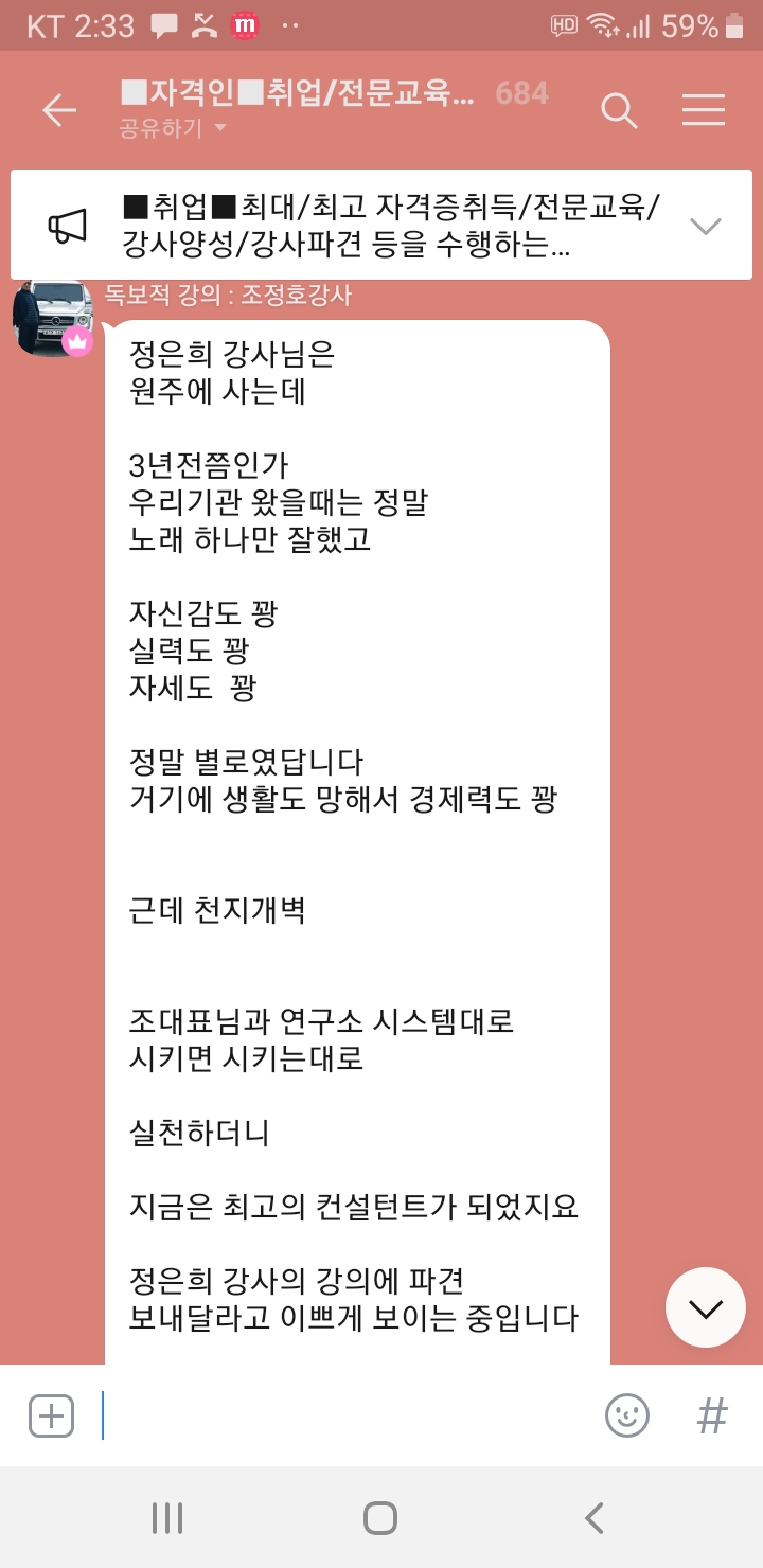 그런데 언제부터 어슬렁거리는 재능이 있는지 조정화 강사도 컨설팅이라는 걸 하고 있습니다.