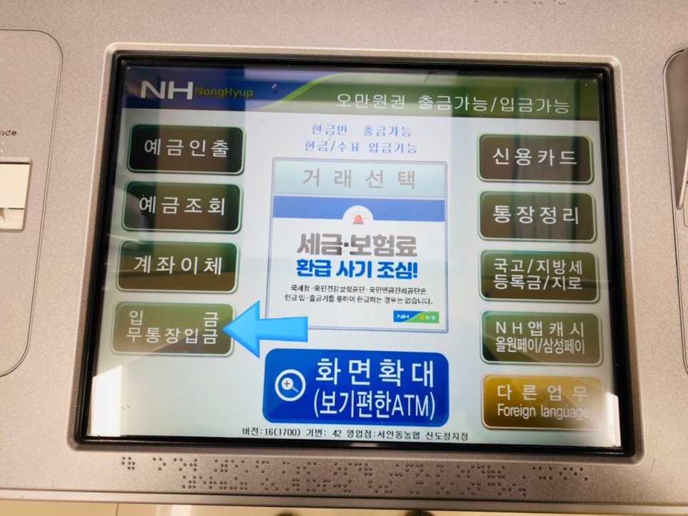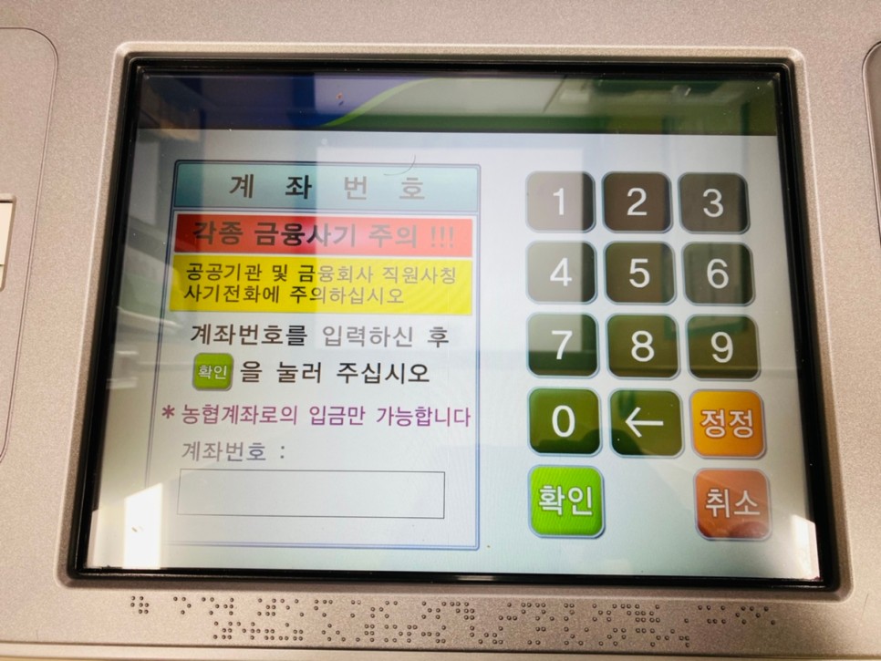 여기서 주의해야 할 점! 해당 ATM 기기의 은행 계좌로만 송금이 가능하다는 점입니다.