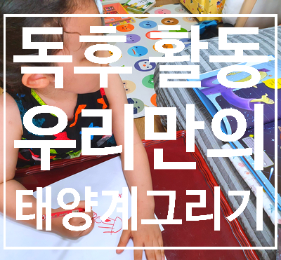 오늘날 독후활동은 이면지를 활용하여 태양을 중심으로 돌고 있는 8개의 행성 그리기(with 지구의 위성=달)