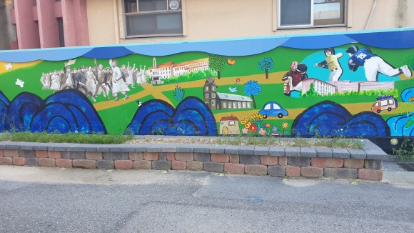 특히 광주 수창초등학교 야구부의 야구 모습, 광주학생독립운동기념탑과 1929년 학생독립운동의 모습, 그리고 <빗속을 둘이서>와 <이름을 알 수 없는 소녀> 노래 가사와 상징하는 벽화도 그려져 있습니다.