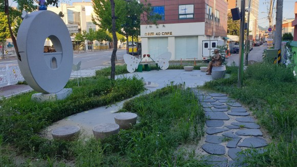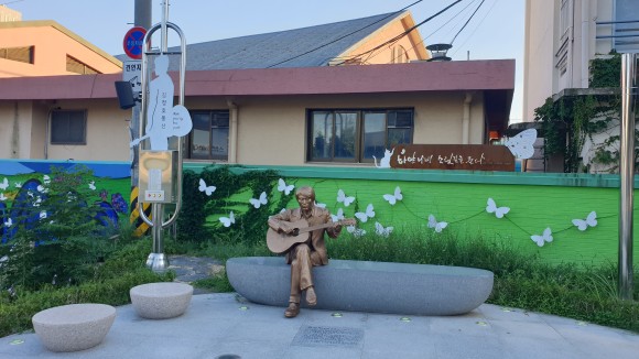 혼자 앉아 있는 가수 김정호와 인증샷이나 함께 노래를 부르기에 좋은 장소입니다.