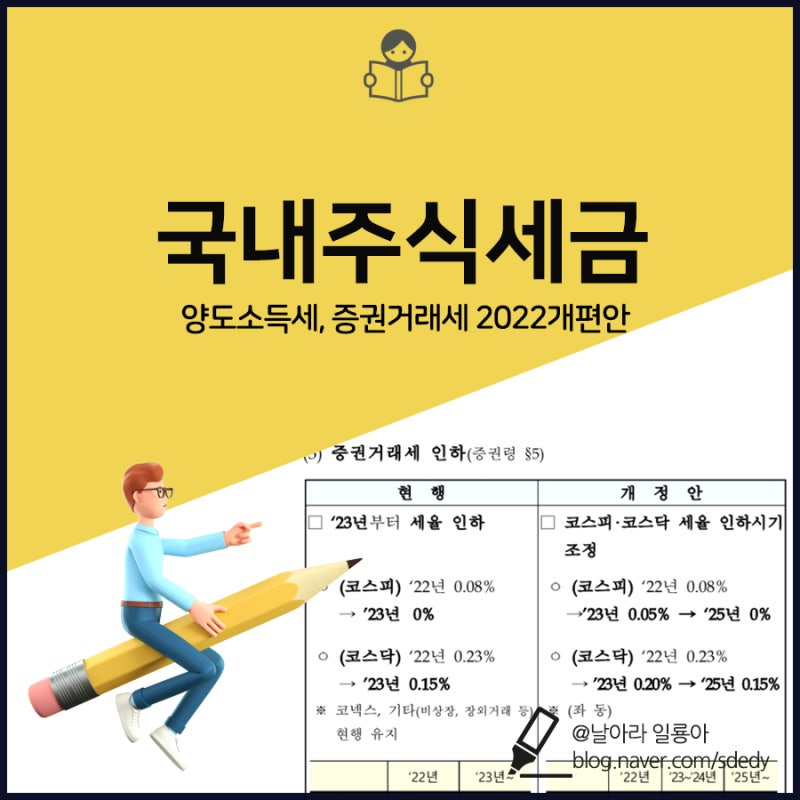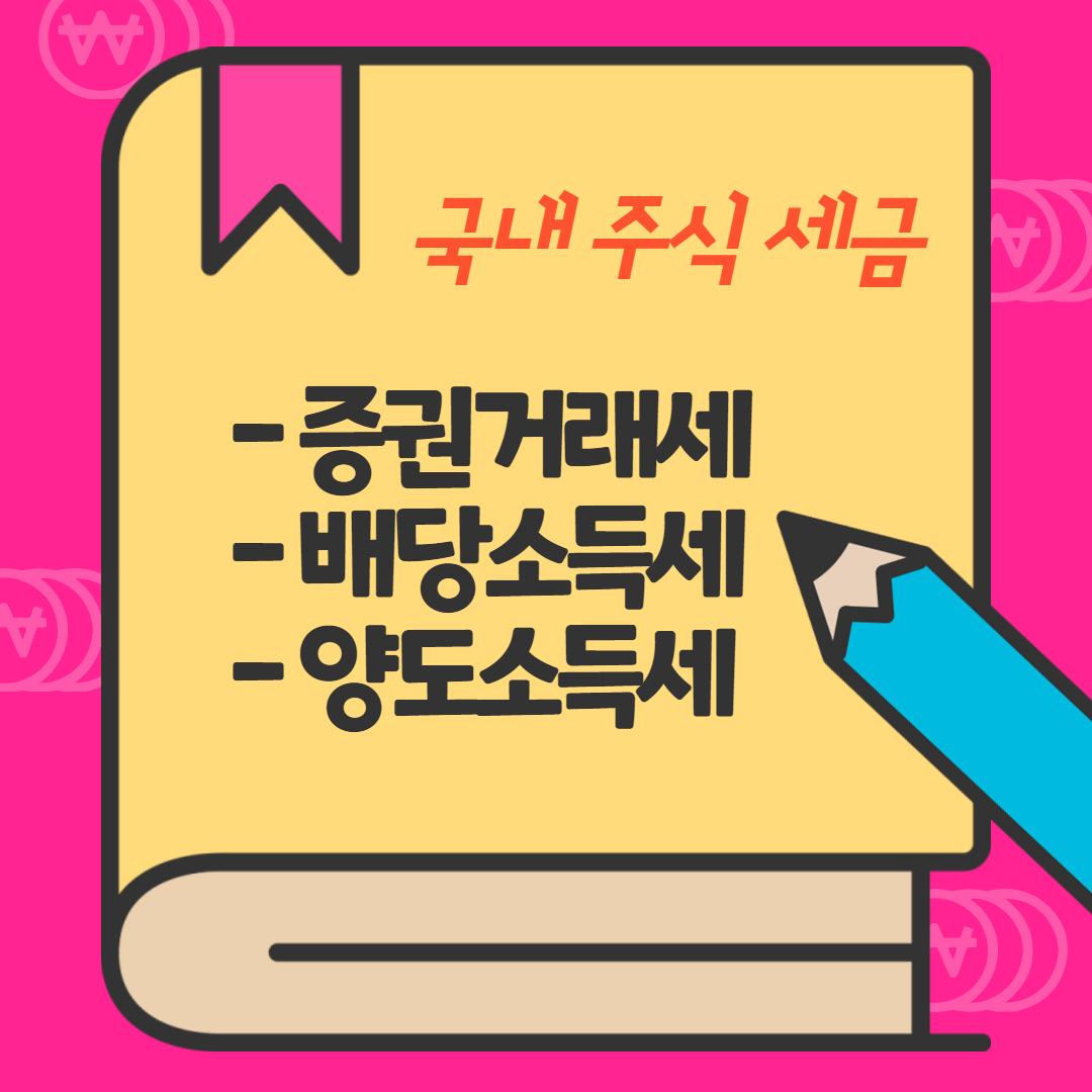 안녕하세요. 넓고 얕은 경제지식을 제공하는 도치맘입니다. 제가 주식 투자를 시작한지 벌써 1년이 지났습니다. 워낙 소액으로 하다 보니까 세금은 별로 신경 안 썼는데 투자금이 커질수록 수익률이 올라갈수록 무시할 수 없는 게 세금이었거든요.(뭐.. 그렇다고 제가 수익률이 오르고 있다는 뜻은 아닙니다…) 특히 내년에는 ‘금융투자소득세’라는 세금이 추가될 예정이라 더욱 미리 공부해서 대응 방안을 고민해야 할 것 같았어요.오늘은 국내 주식에 부과할 세금은 무엇인지, 그리고 2023년에 도입될 금융투자소득세는 무엇인지 알려드리겠습니다.