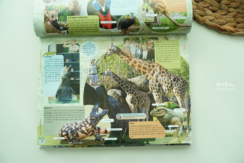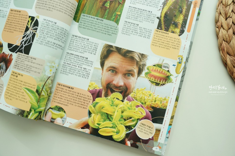 이외에도 해양생물, 나무, 육식성식물 등 다양한 자연계의 이야기도 포함되어 있어 유아기 아이들도 거부감 없이 쉽게 다가갈 수 있었던 것 같습니다.더불어 우리나라에만 국한된 것이 아니라 전 세계 #기네스북 신기록에 대한 어린이 백과이기 때문에 아이들의 창의력을 키우고 견문을 넓히기에도 좋았고!