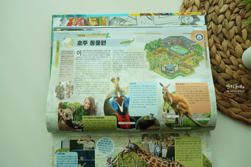 둘째 아이는 아직 어려서인지 동물, 식충식물 같은 자연에 관한 내용만 골라보고 있어요! 심각한 산림파괴를 시작으로 호주동물원을 가상 방문하는 페이지가 있는데 아는 동물 친구가 등장해서인지 틈만 나면 펼쳐보고 있었어요>.<