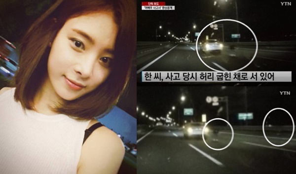 경찰이 확보한 차량 블랙박스에 따르면 고(故) 한지선은 남편이 먼저 내린 뒤 10초 뒤 운전석에서 내려 차량 트렁크 쪽으로 걸어가 몸을 1~2회 내리고 좌우로 꼬이는 행동을 한 뒤 사고를 당했다.