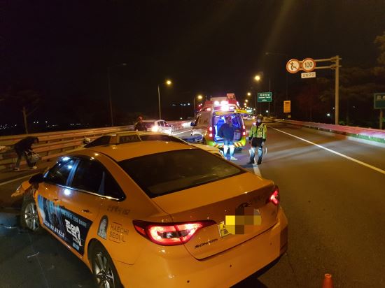 고 한지성은 2019년 5월 6일 김포시 고촌읍 인천국제공항고속도로 서울방향 김포공항 나들목(IC) 인근 도로상에 정차해 있던 상황에서 택시와 올랜도 승용차에 잇따라 치였다.