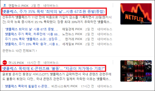 주식에 관심이 있고 투자를 하시는 분들은 #넷플릭스 폭락 소식을 공유하며 이야기를 나눴을 것 같다.대표적인 OTT가 넷플릭스이기 때문에 다른 플랫폼들도 상황은 비슷할 것으로 보인다.