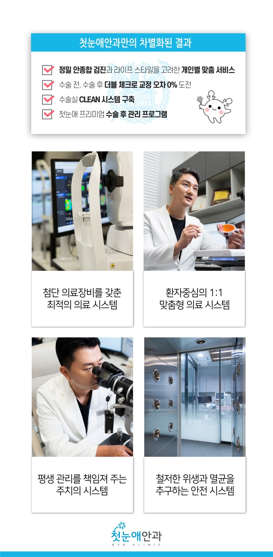 첫눈사랑안과는 진료부터 수술까지 1:1 맞춤 치료가 진행됩니다.눈 상태에 적합한 치료 방법으로 건강한 눈을 회복할 수 있도록 합니다.