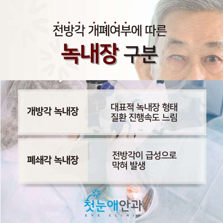 녹내장은 크게 개방각 녹내장과 폐쇄각 녹내장으로 분류합니다.이는 전방위 개폐 여부에 따라 결정됩니다.