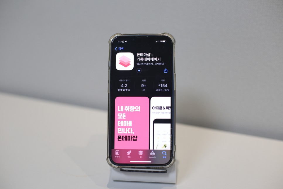 아이폰 카카오톡 테마변경을 위해 먼저 앱을 다운로드해주세요. 앱스토어에 스마트폰 테마샵을 검색 후 다운로드해주세요.