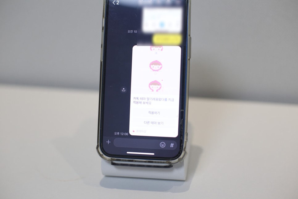 저에게 카카오톡 주제가 보내진 모습입니다. 여기서 ‘적용하다’를 눌러주시면 90%는 끝났다고 보시면 됩니다.