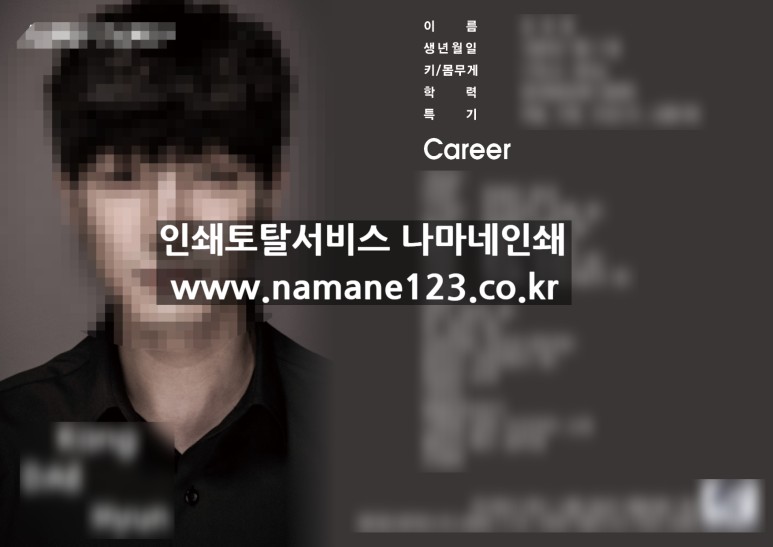 개성있고 퀄리티있는 배우 프로필!! 인쇄 토탈 서비스인 나마네 인쇄에서는 디자인 작업부터 인쇄 제작, 각종 후가공 작업까지 모든 작업을 한번에 진행할 수 있습니다.