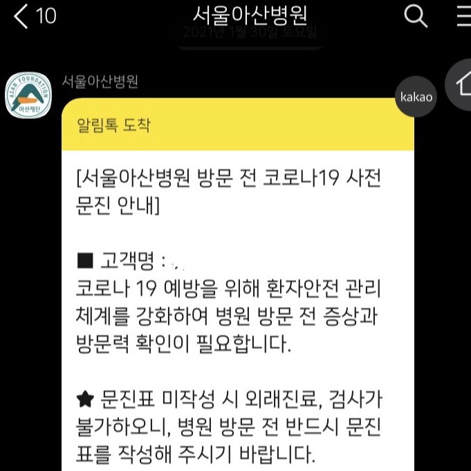 아산병원만 그럴 수도 있지만 병원 방문 전날 항상 이렇게 카톡을 하고 주의사항도 보내준다.CT 촬영을 하려면 검사 시간 최소 6시간 전부터 금식을 해야 했다. 물을 머금다