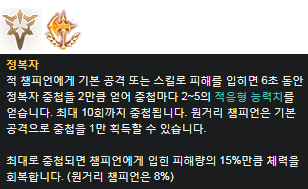 평캔도 가능하고, 계속 싸움에 가장 좋은 정복자 룬을 꼽습니다. 다른 룬은 생각할 수 없어요. 추가 AD 수치를 올릴 수 있고 고정딜에 피흡까지 있어 유지력과 딜 두 마리 토끼를 잡았기 때문입니다.