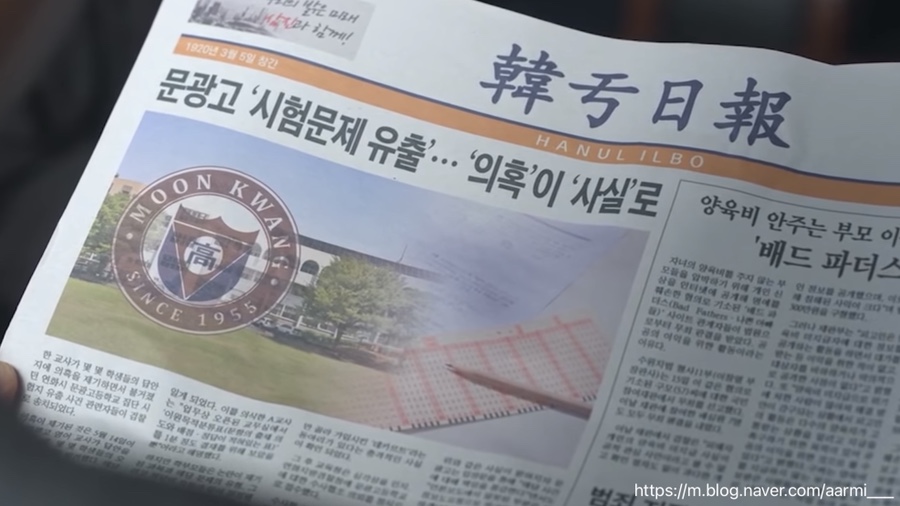 한편 자신의 아들이 다니는 문광고 시험지 유출 사건과 관련이 있느냐는 법원장의 말에 자신도 제안을 받았지만 무관하면 깨끗하다는 강원중부장판사.