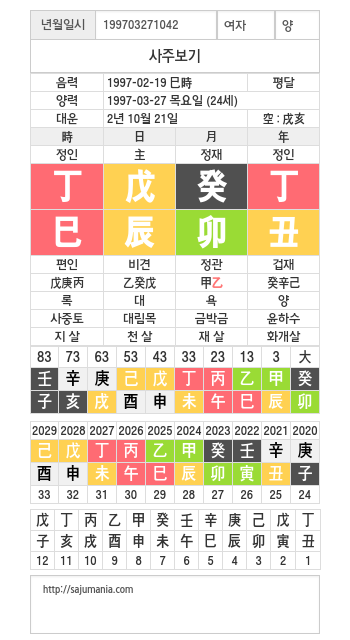 이번 대운 10년간 계속이네요. 자기 나라에서도 굉장히 존경을 받지 않을까