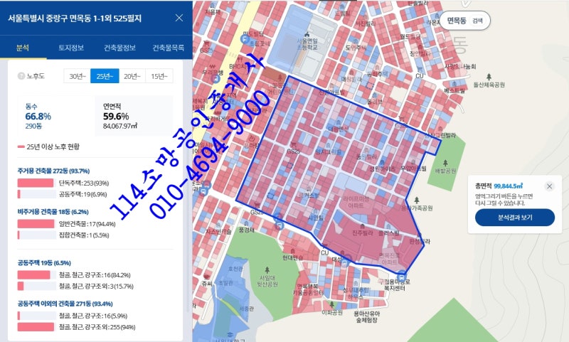 모아타운으로 지정될 경우 노후도가 57%까지 완화 적용되면 동의징구 예정면적도 2만㎡까지 완화되고 두 블록씩 구역을 나누지 않을까 싶습니다.지하철(2개) 7호선 사가정역 641m 10분거리, 7호선 면목역 684m 10분거리, 버스정류장(8개) 녹색병원입구 114m 2분거리, 녹색병원입구 125m 2분거리, 장안시장 251m 4분거리, 늘푸른근린공원 260m 4분거리, 면목5동주민센터 265m 4분거리, 초등학교(6분거리, 서울면목) 서울면목 5분거리,