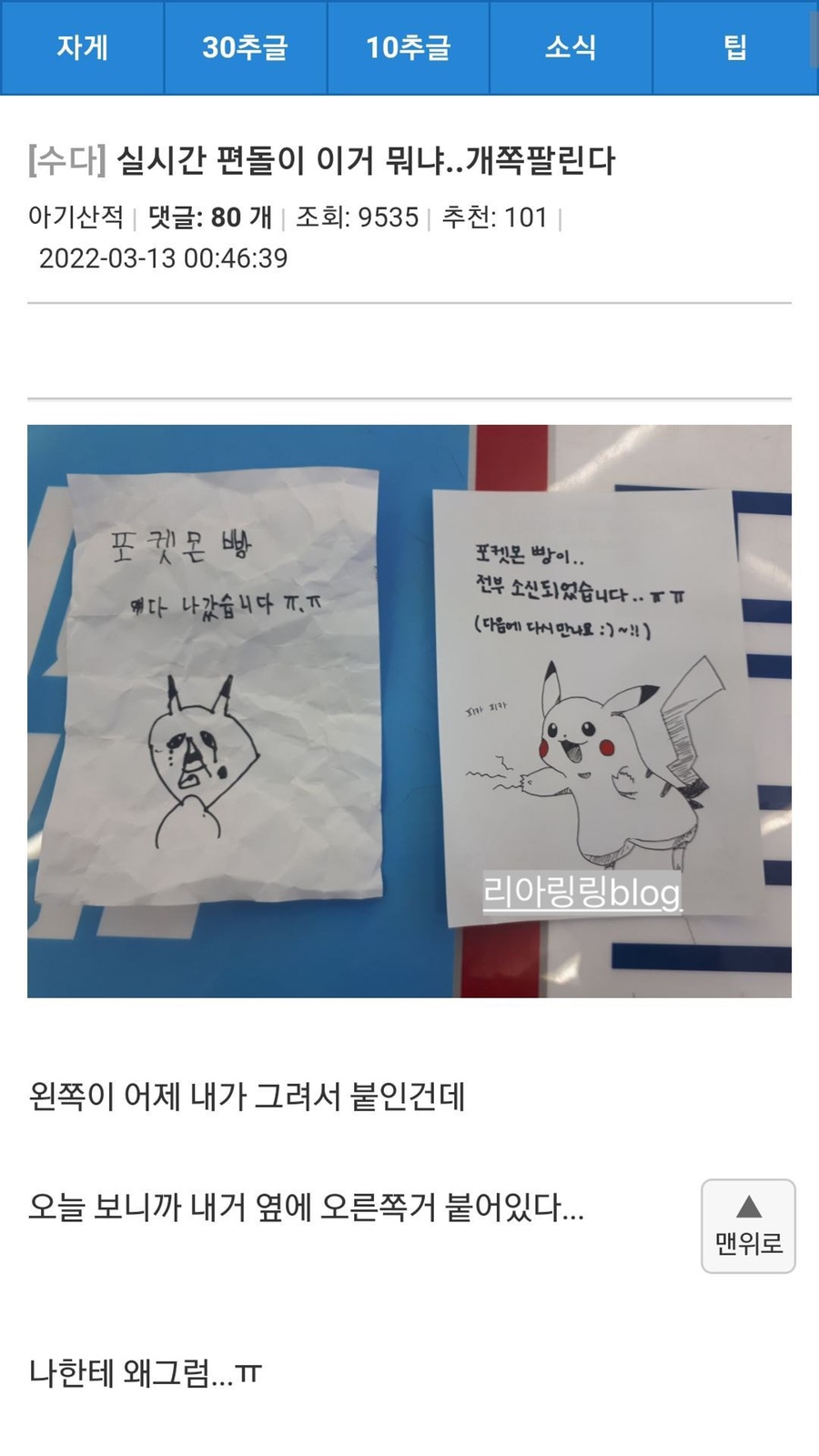포켓몬 빵 때문에 부끄러워진 평돌이