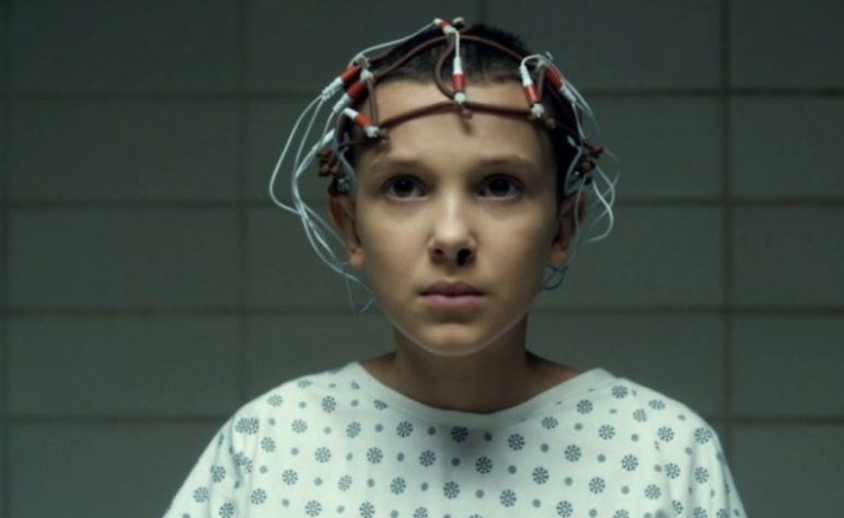 손목에 011(일레븐)이라는 숫자가 새겨진 여자아이가 수수께끼의 연구소 시설을 탈출합니다. 더스틴, 루카스를 포함한 3인조 아이들은 숲에서 일레븐을 발견했지만 그녀는 남들보다 언어를 사용하는 데 미숙했어요. 일레븐은 누군가가 자신의 목숨을 노리고 있다는 것을 표현하고 마이클은 자신의 다락방에 숨겨줍니다.