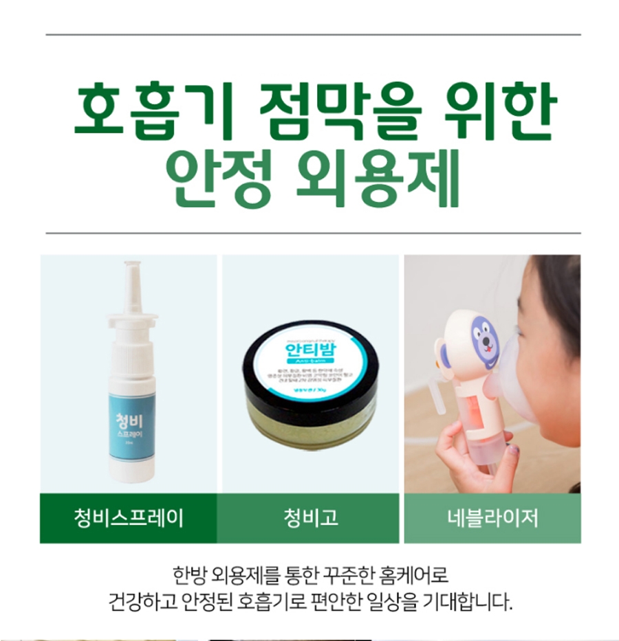 일상 속에서도 정녕한 큐어를 이러한 방안 외에도 한의원의 돌봄을 받을 때에는 외용제도 함께 처방하여 회복을 더욱 도울 수도 있습니다. 막힌 코를 열기 위해 바로 쿨링 효과와 습하고 부어 있기 때문에 열감이 높아진 상태를 진정시키는 스프레이나 입으로 자꾸 숨을 쉬는 활동이 늘고 건조한 코, 목 상태를 보완하는 스프레이도 함께 사용하면서 효과적으로 대처할 수 있으니 나이에 관계없이 만성적으로 증상이 지속되고 있다면 한방 치유도 한번 고려해 보는 것이 어떨까요?