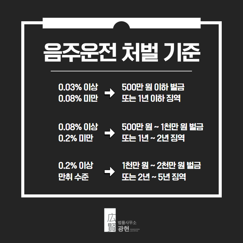 음주 운행의 처벌 수준은?현행 기준으로 혈중알코올농도 수치가 0.03% 이상이면 도로교통법 제44조제4항에 따라 음주운전에 해당하며 이때부터 형사처벌 및 행정처분이 이루어지며 각종 민사상 책임(예를 들어 보험료 할증이나 인상)도 지게 됩니다.