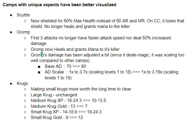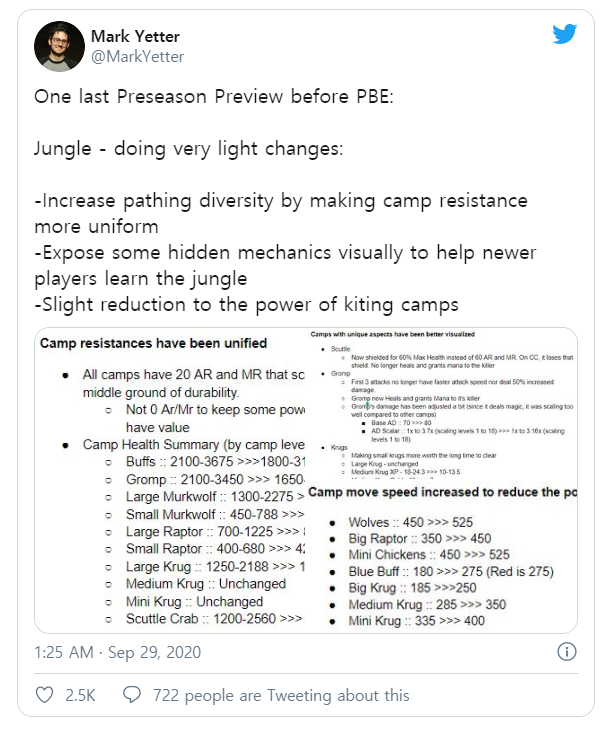 마크 예터가 공개한 프리시즌 정글몹 개편입니다.