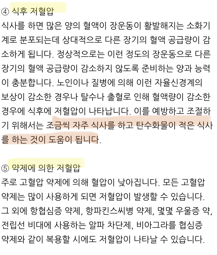 저혈압: 수축기 혈압 90mmHg, 이완기 혈압 60mmHg 미만을 저혈압으로 정의 저혈압은 증상을 동반하지 않으면 치료가 필요 없지만 급성 저혈압의 경우 그 원인을 치료해야 합니다.