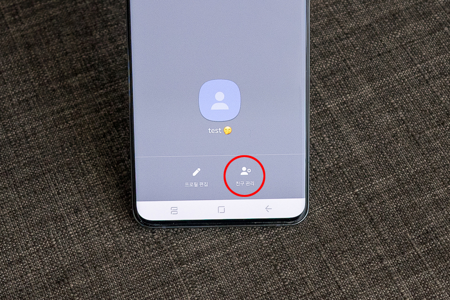 친구를 지정하는 방법도 간단하다. 편집란에서 나오면 두 개의 버튼이 보이는데 오른쪽에 친구관리 버튼과 다시 추가 버튼을 눌러준다.