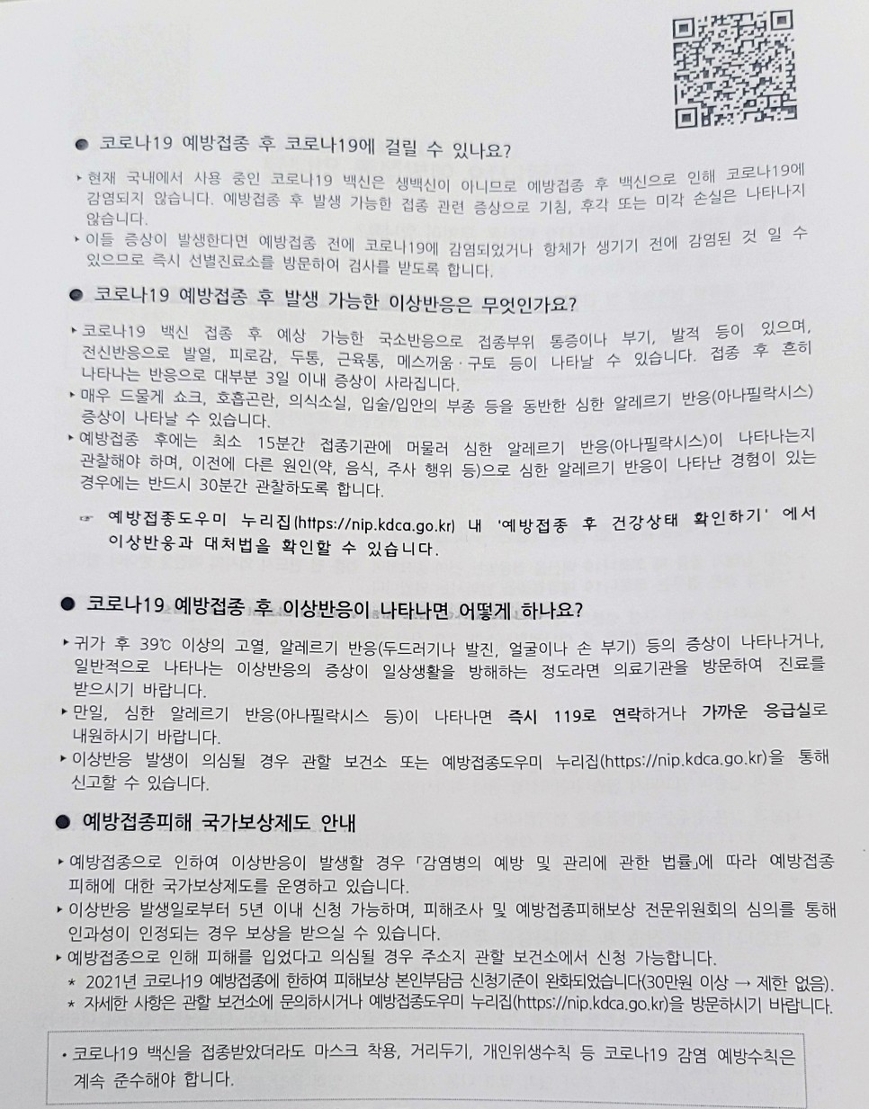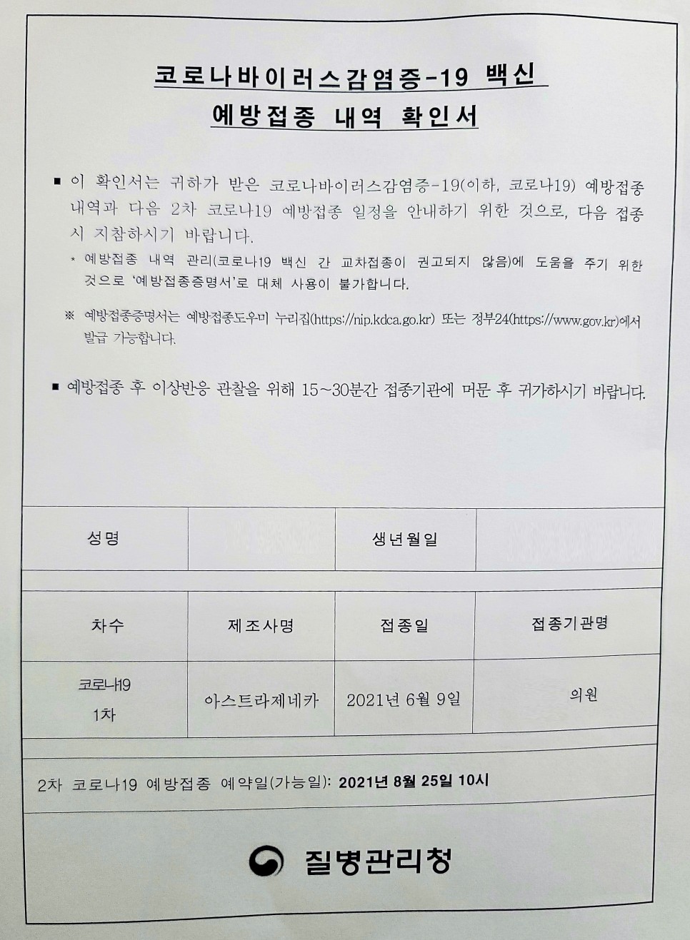 코로나19 예방접종 안내문 | 서식 | 법령·지침·서식 | 통보·자료 : 질병관리청 질병관리청 www.kdca.go.kr