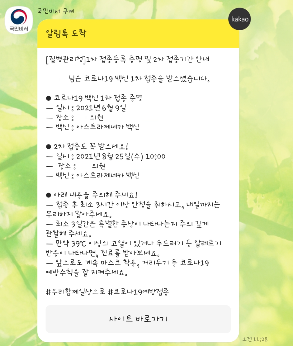 그리고 “며칠 후에 국민비서 구피?”라고 카톡이 와요질병관리청에서 다시 한번 안내 메일을 보내줘요.