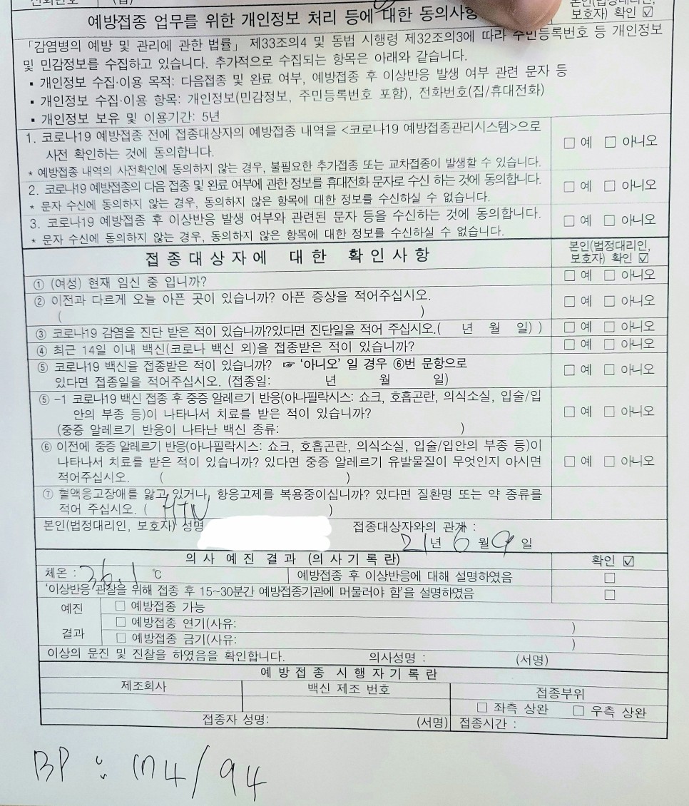 우선 도착하면 이렇게 문진표를 작성하셔야 합니다그리고 바로 온도체크와 고혈압체크를 하는데!!