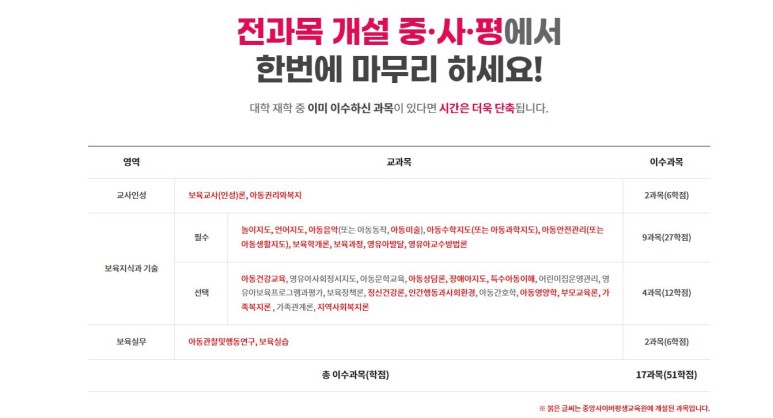 중앙사이버평생교육원 보육교사 2급 개설과목