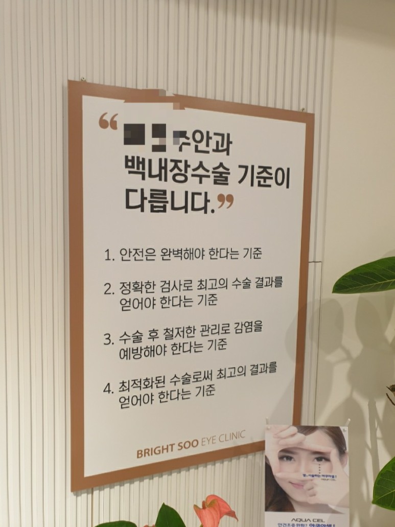 검사비용도 상담받고..어머니가 실비보험이 없어서 비용 문제도 걱정이었는데 백내장 수술은 보험 적용이 돼서 비용이 크게 부담되지 않았어요.다행히^^;
