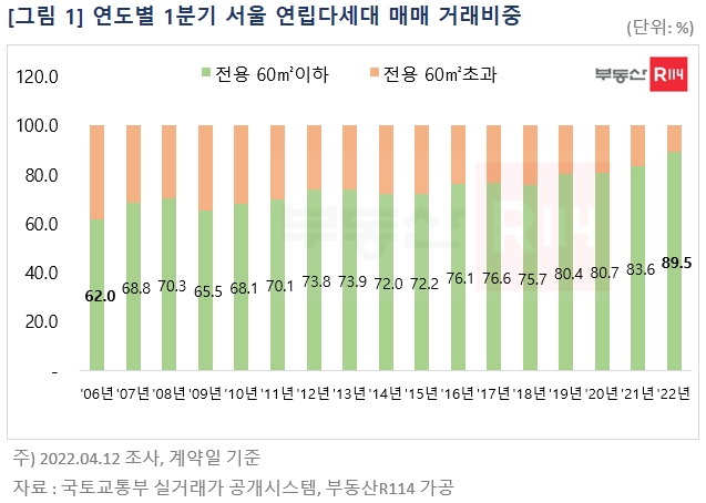 입주 5년 이하 서울의 소형 아파트 거래 비중이 늘어난 원인으로는 최근 두드러진 새 아파트 선호 현상과 높은 서울 집값, 대출 규제 등이 꼽힌다. 스마트한 채 선호로 서울의 새 아파트 가격이 크게 오른 반면 서울의 주택담보인정비율(LTV)이 40%로 제한되면서 내 집 마련 부담이 커지자 상대적으로 매입금액이 낮은 소형을 매수하는 실수요가 늘어난 것으로 풀이된다. 여기에 가구원 수 감소, 가성비를 중시하는 주거 트렌드 변화도 소형 새 아파트 수요 증가 요인으로 판단된다.