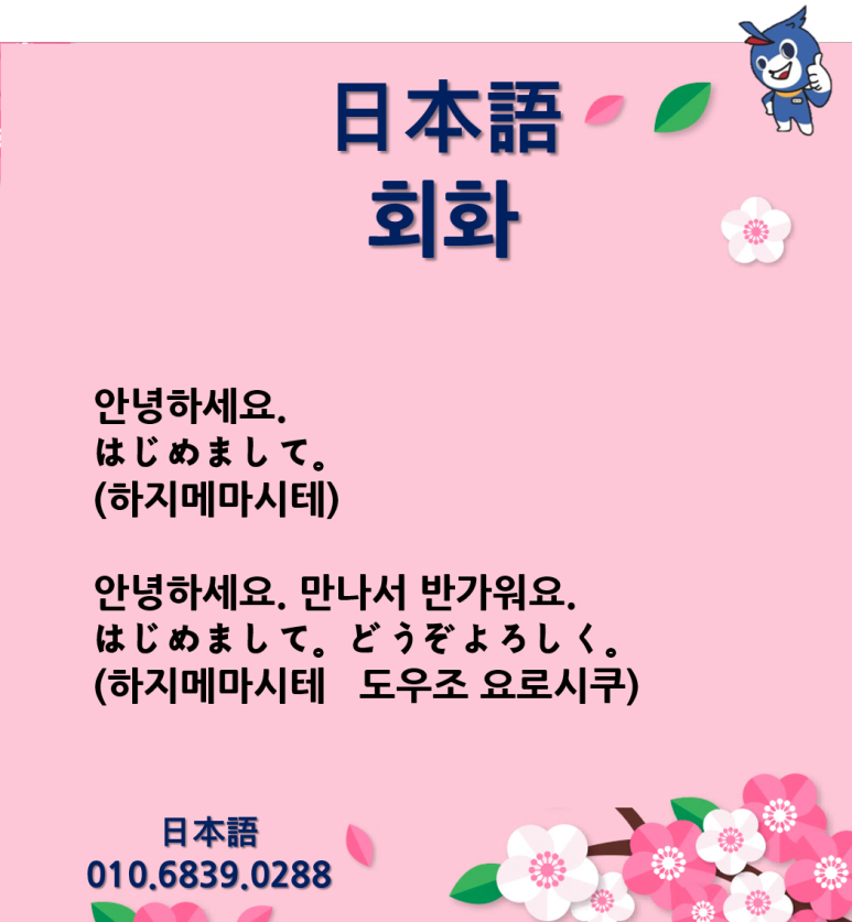 송도동 일본어 회화 인사말도 아침/안녕하세요 웃으려고 여기까지, 안녕하세요 회사 사람들과 인사할 때 안녕하세요라는 소속 집단 사람들끼리 아침에 처음 만났을 때 반말로 인사하곤 합니다. 낮/곤일과는 이른 아침이나 늦은 저녁이 아니면 널리 사용됩니다. 저녁 인사인 곰방과는 오늘 밤은 잘 지내나요? 등의 인사 표현으로 가족끼리 사용하지 않습니다.헤어질 때 ‘사요나라’는 유치원생이나 ‘내일 다시 만나자’ 등으로 사용하고, 성인 대화에 사용할 때는 긴 여행이나 멀리 떨어질 때 쓰이는 편입니다. 또 아키타(또 내일 보자) 또는 내주에서 사용하겠습니다.말을 탈께, 그럼 또 만나자, 그럼 다음에 보자.) 등이나 바이바이(바이바이)를 사용하는 경우도 있습니다.