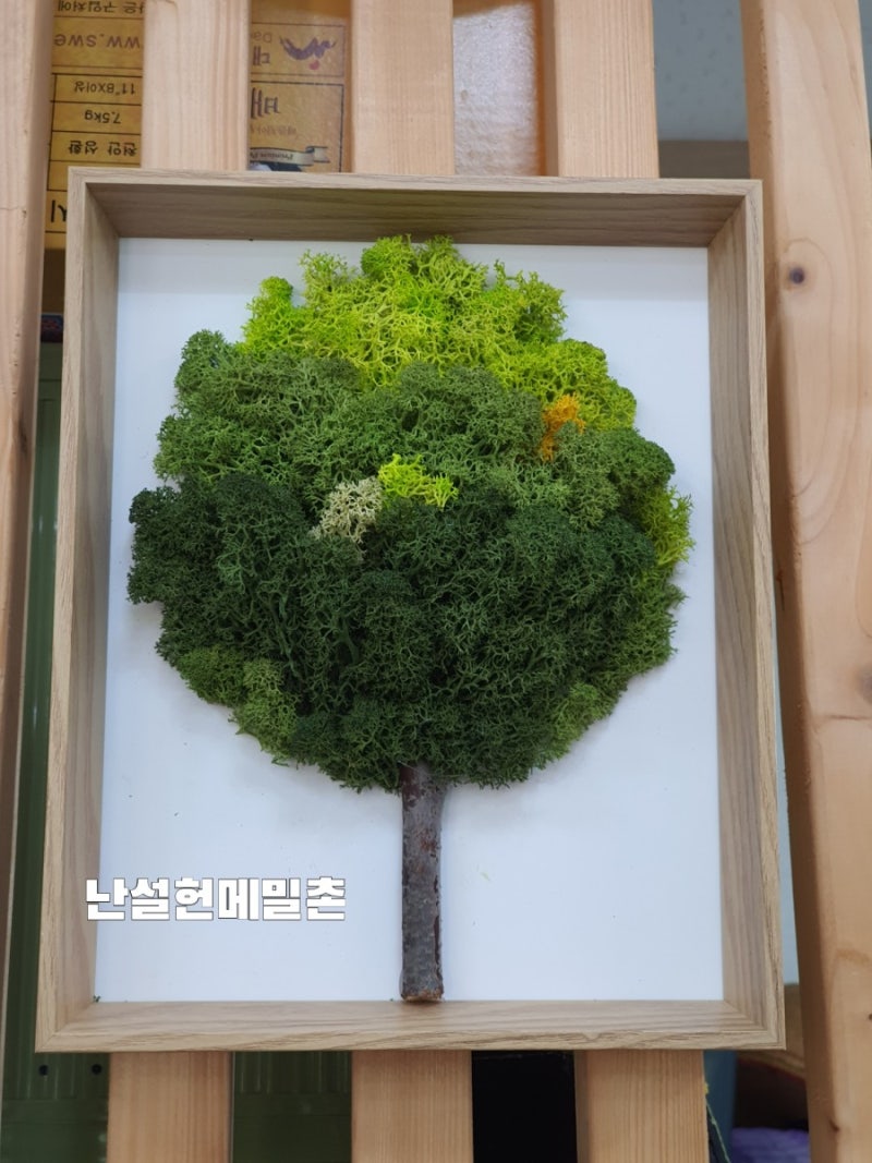 스칸디아모스로 나무 액자를 만들어 봤어요.
