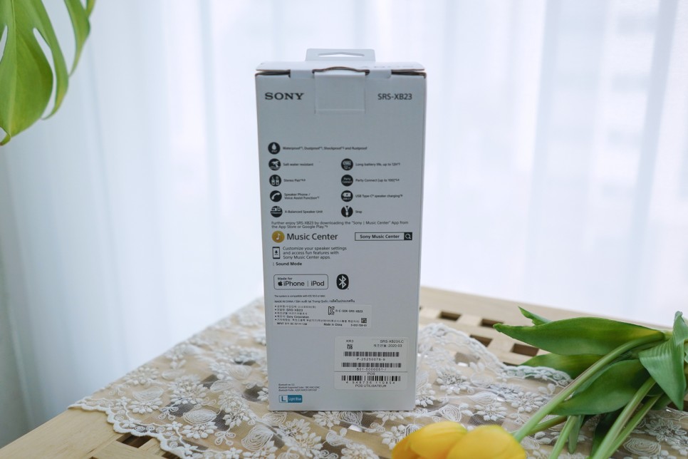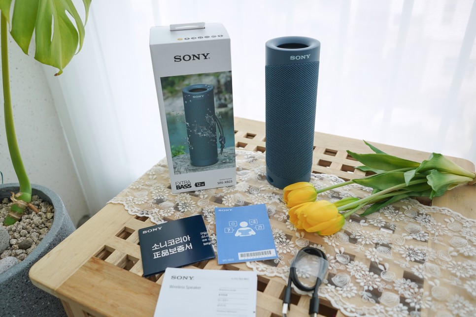 소니 블루투스 스피커 SRS-XB23이 도착했습니다.이번 모델은 지난해 인기 모델인 SRS-XB22의 후속 모델이라고 합니다.달라진 점은 소니 자체 개발한 ‘X밸런스드 스피커 유닛’ 탑재와 ‘오디오 기술’이 적용된 점!