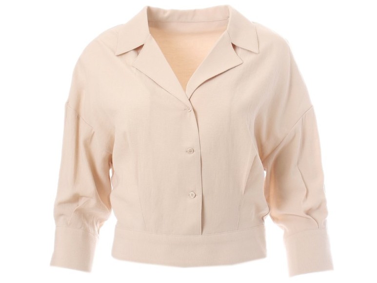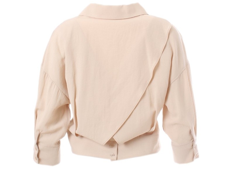 시원해 보이는 브이넥 카라로 여리여리한 넥라인도 강조할 수 있으며 어디에나 입기 좋은 베이지 컬러로 앞쪽은 평범한 블라우스처럼 보이지만 뒤쪽을 보시면 랩 형식으로 반전 매력을 발휘할 수 있는 아이템입니다.