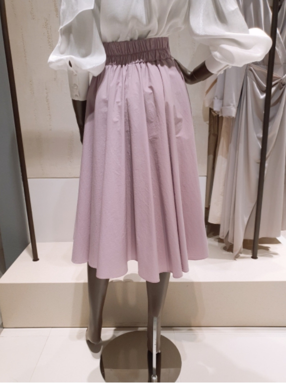 무릎밑까지 내려오는 스커트라 다리를 더욱 길어보이게 해주고 허리에 셔링이 들어간 밴딩이 있어 허리를 잘록하게 해주어 깔끔한 라인을 만들어줄 수 있어요.